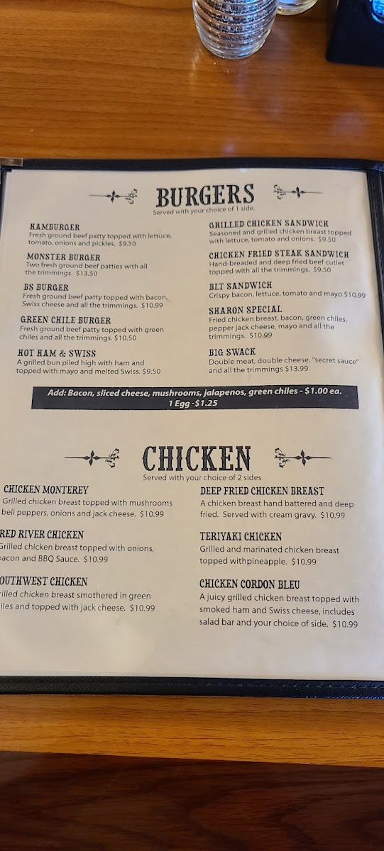 Swackhammer's Texas Grill Menu